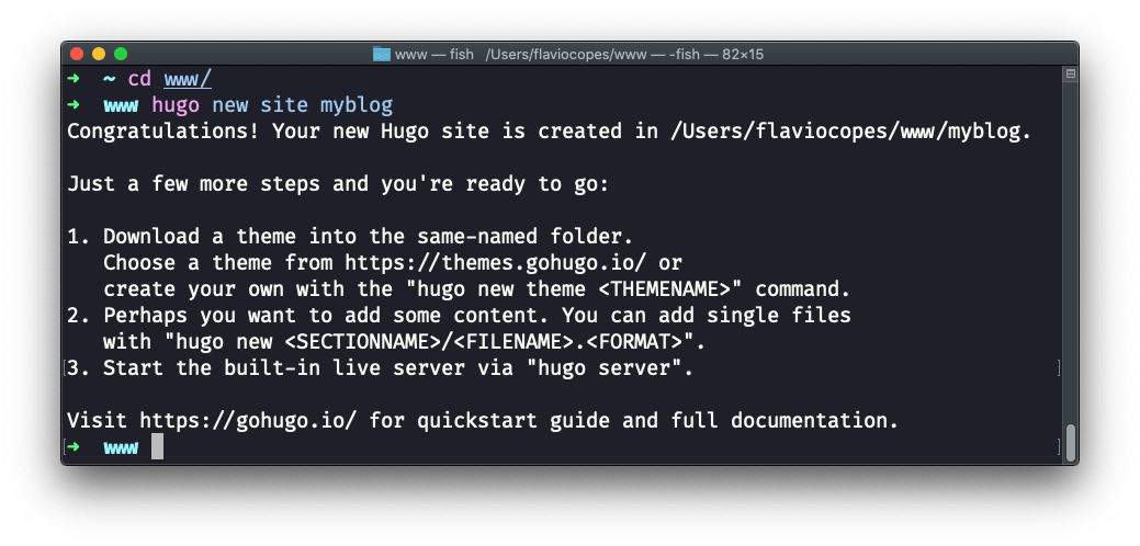 hugo new site my-website